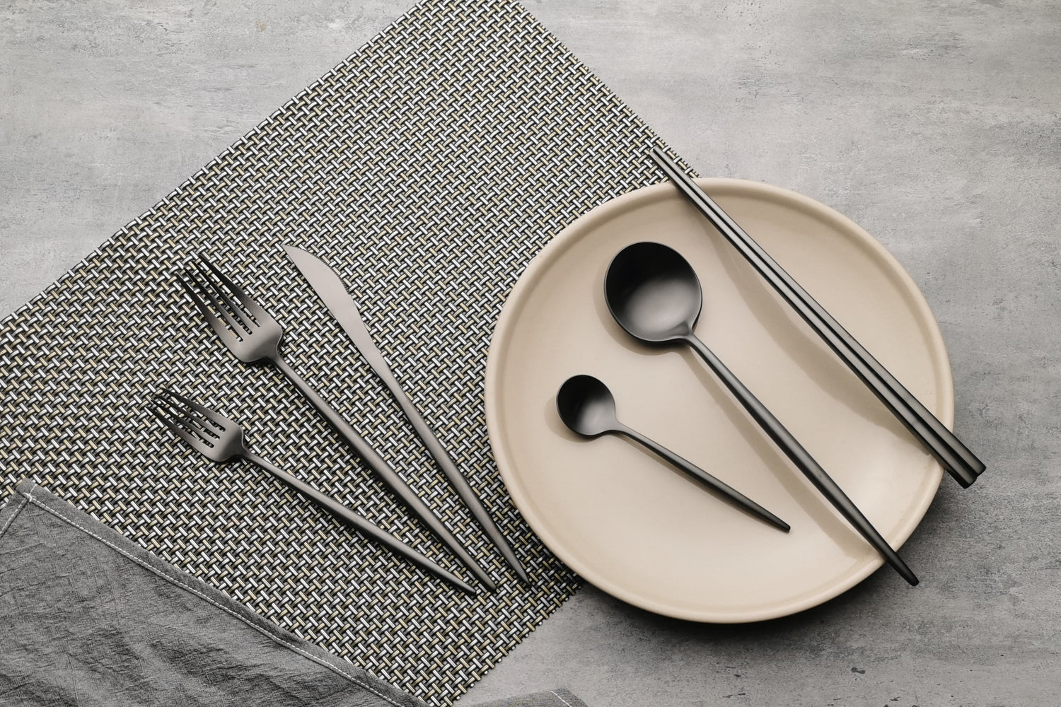 SYMBIOSIS OF EAST AND WEST: Chopsticks are thoughtfully included for added element of sophistication. We curated these minimalist and unique bundles of 8: Dinner Spoon, Dinner Fork, Knife & Chopsticks (Service for 2).